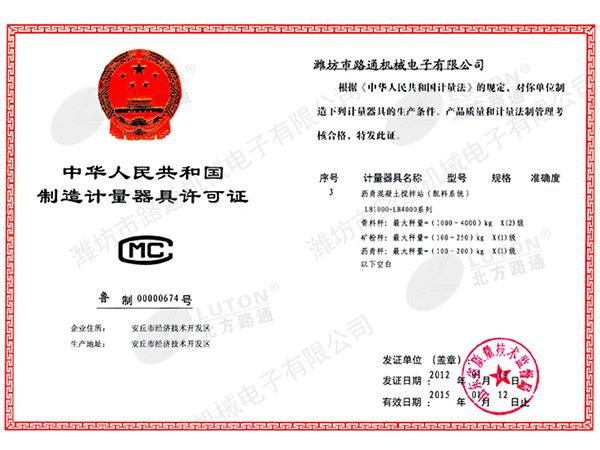 2015年計量器具生產許可證-混凝土、瀝青