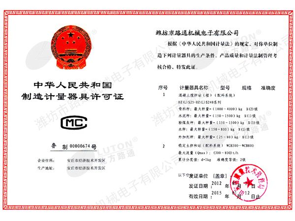 《制造計量器具許可證》混凝土、穩定土